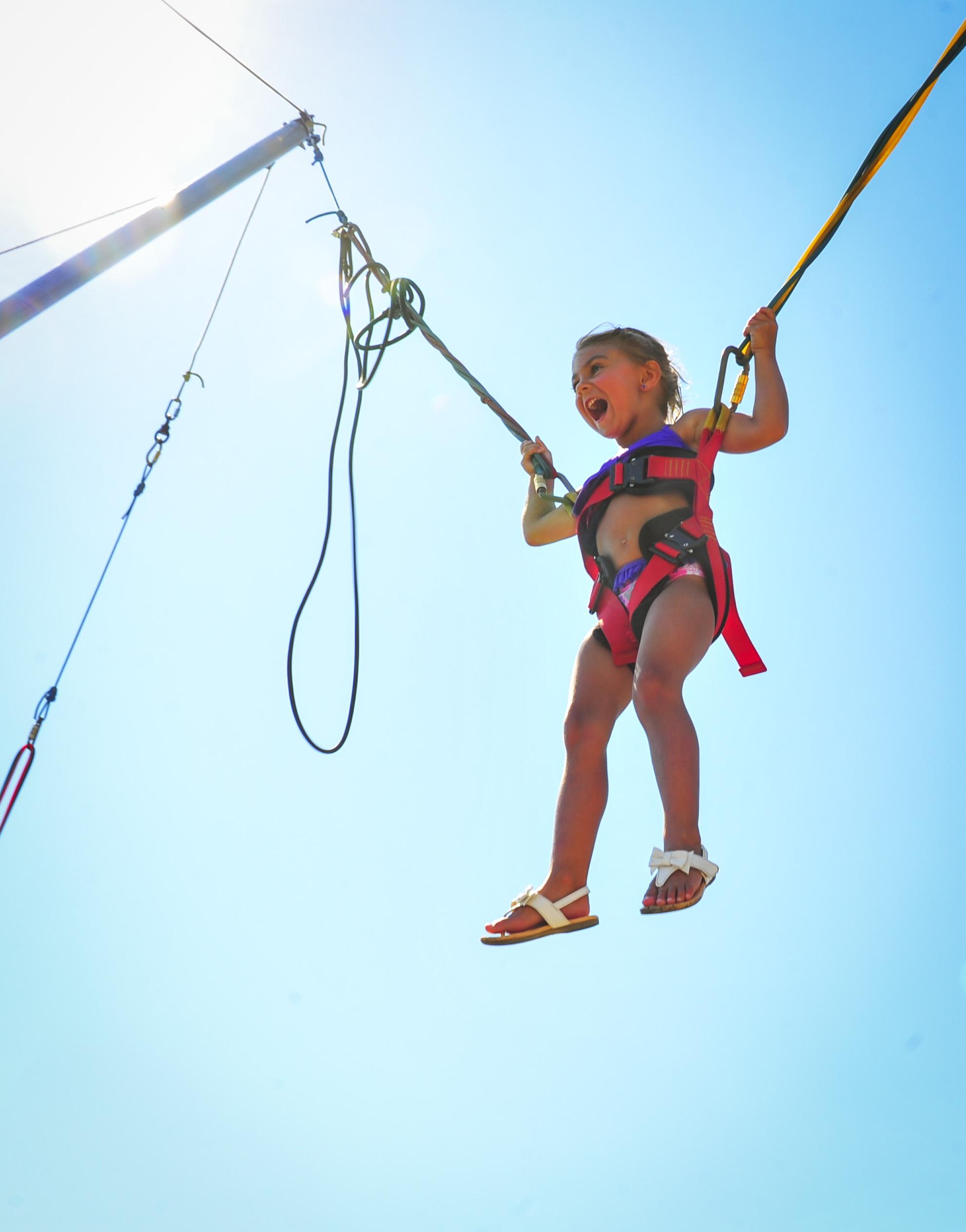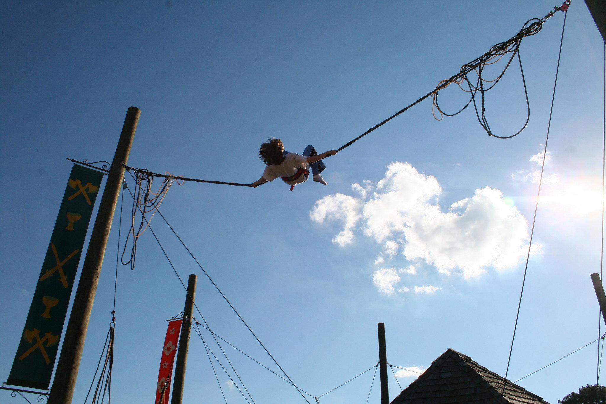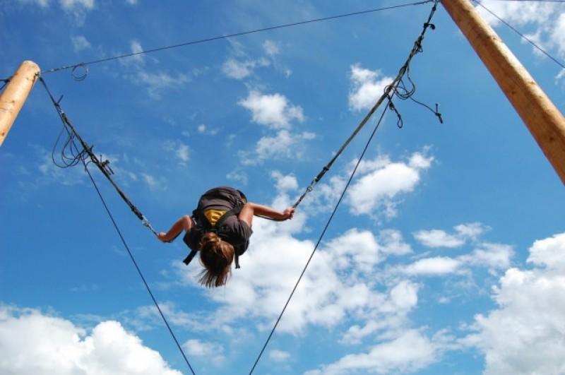 Návštěvníka nejprve bezpečně upoutáme do pružných popruhů a pak už se podle libosti může odrážet od trampolíny a užívat si pocit, že mu "narostla křídla". Vznášet se, zkoušet různé přemety, roznošky a vše, co Vás napadne. V tu chvíli zákon gravitace prostě nebude existovat.