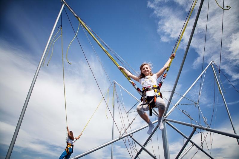 Je to lehce adrenalinová zábava, která spojuje skákání na trampolíně a bungee jumping.