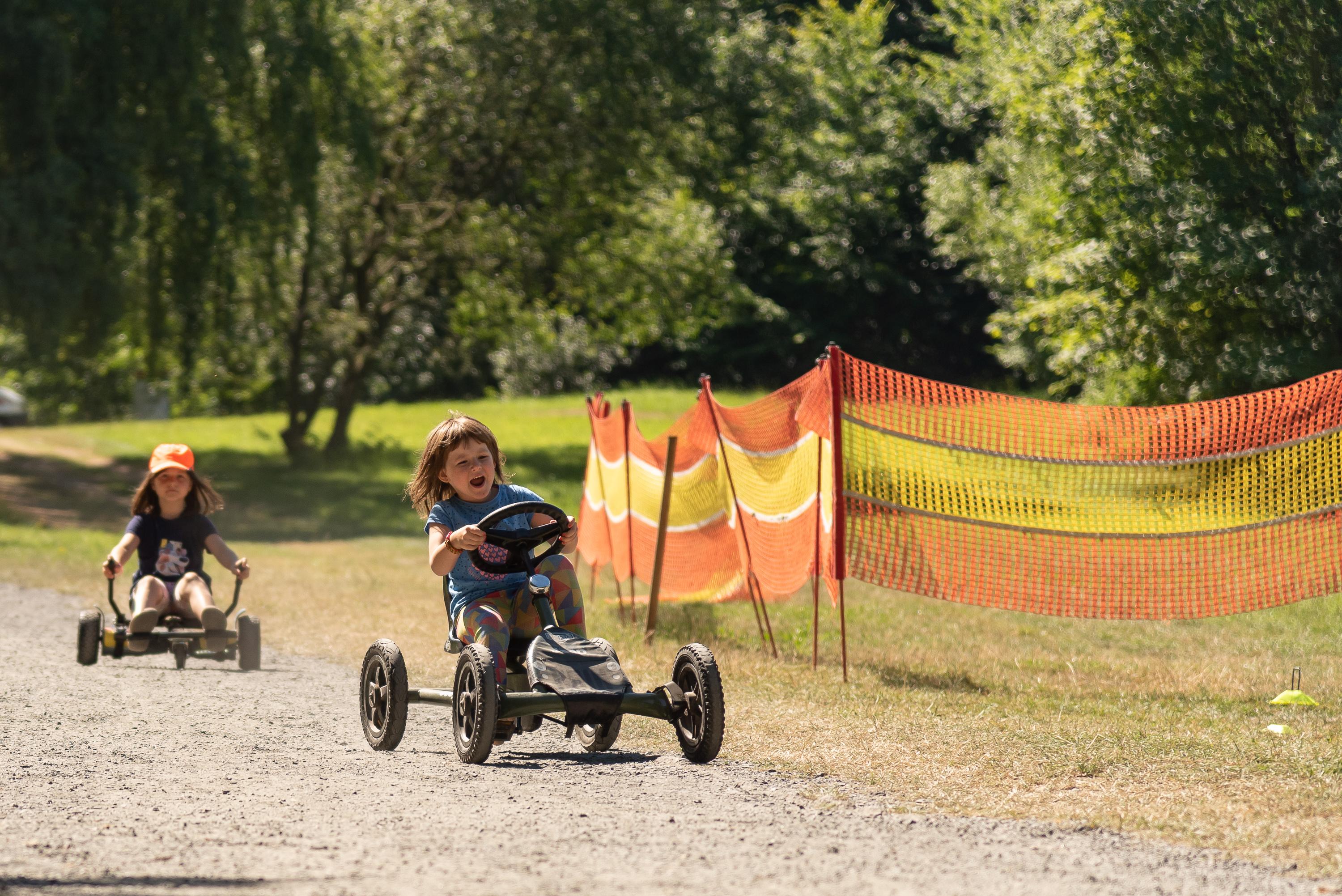 V našem volnočasovém areálu si můžete vypůjčit i různé druhy šlapacích motokár.